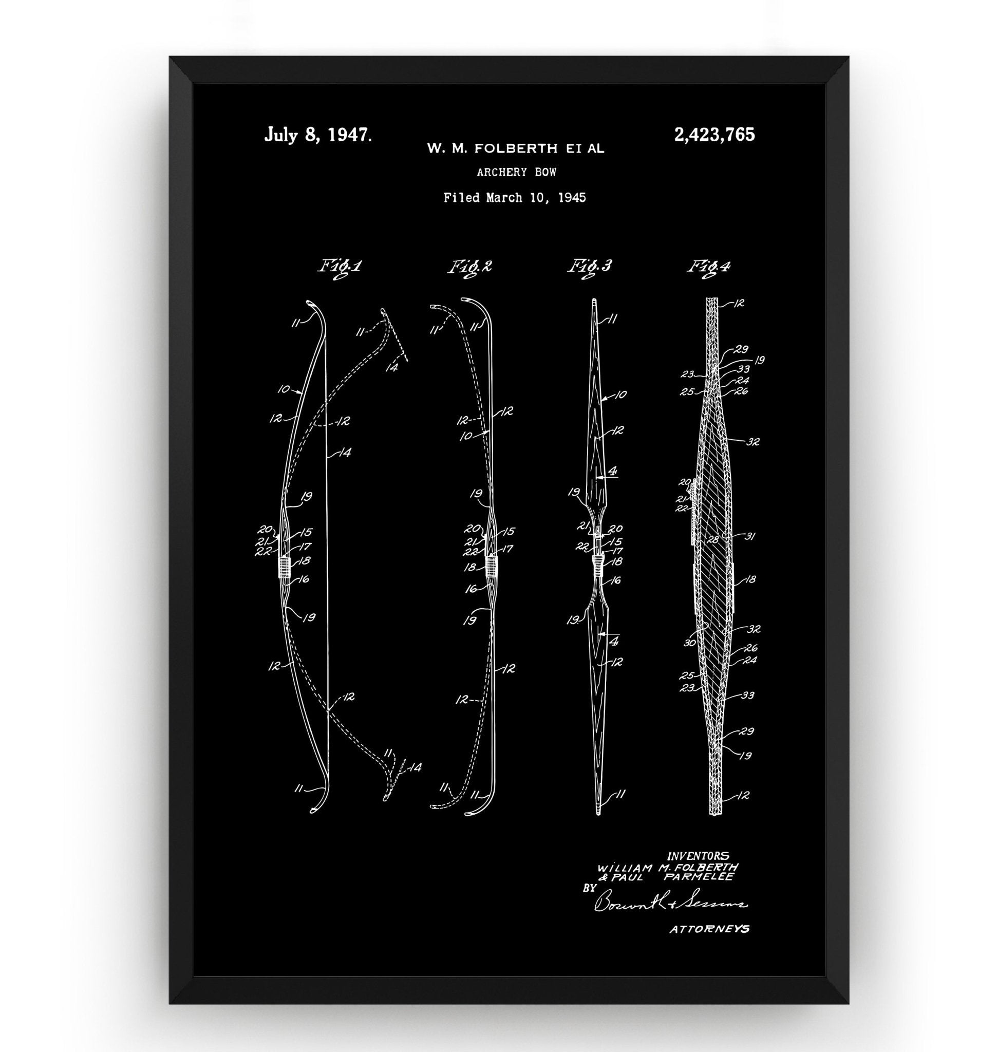Archery Bow 1945 Patent Print