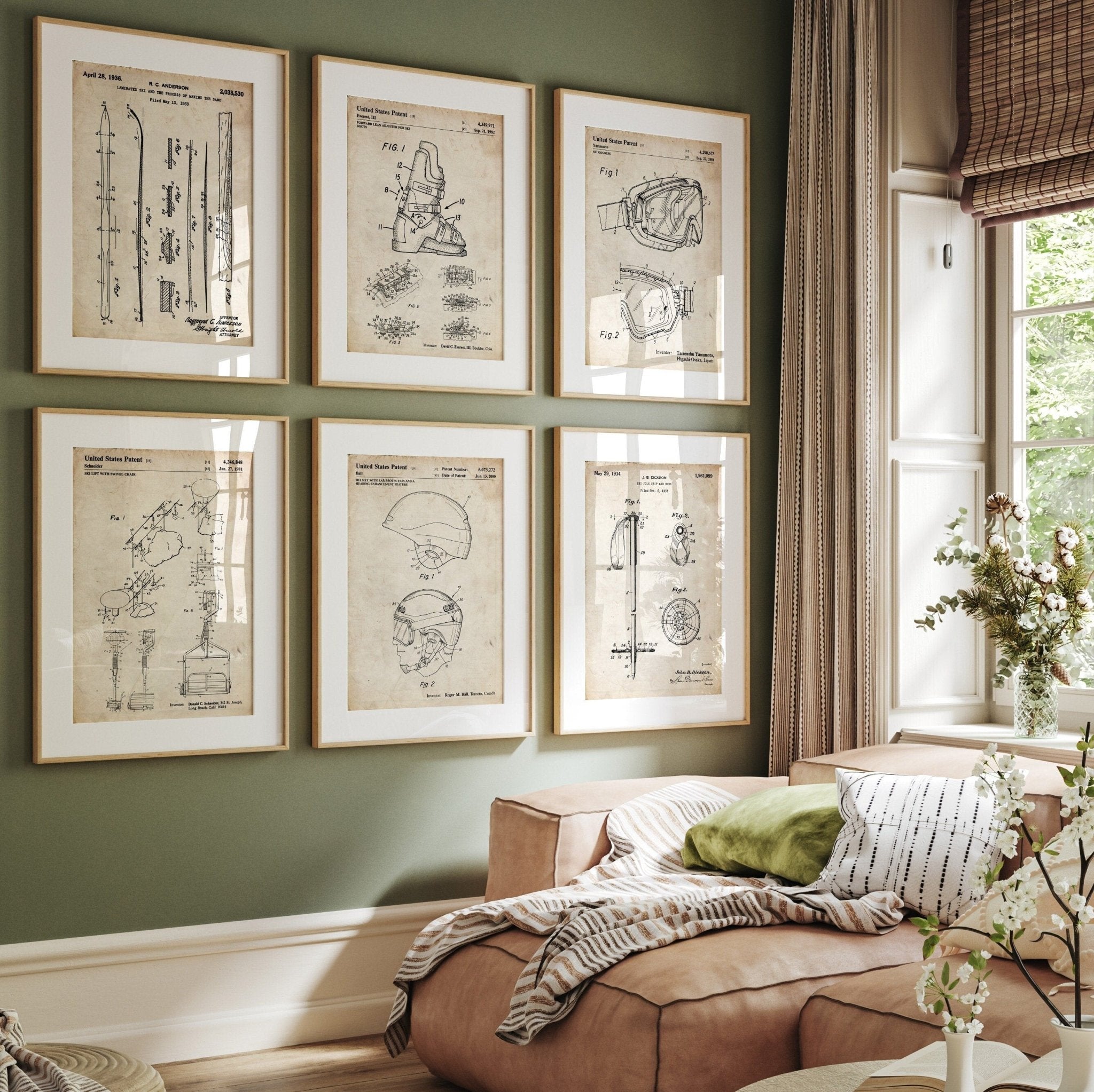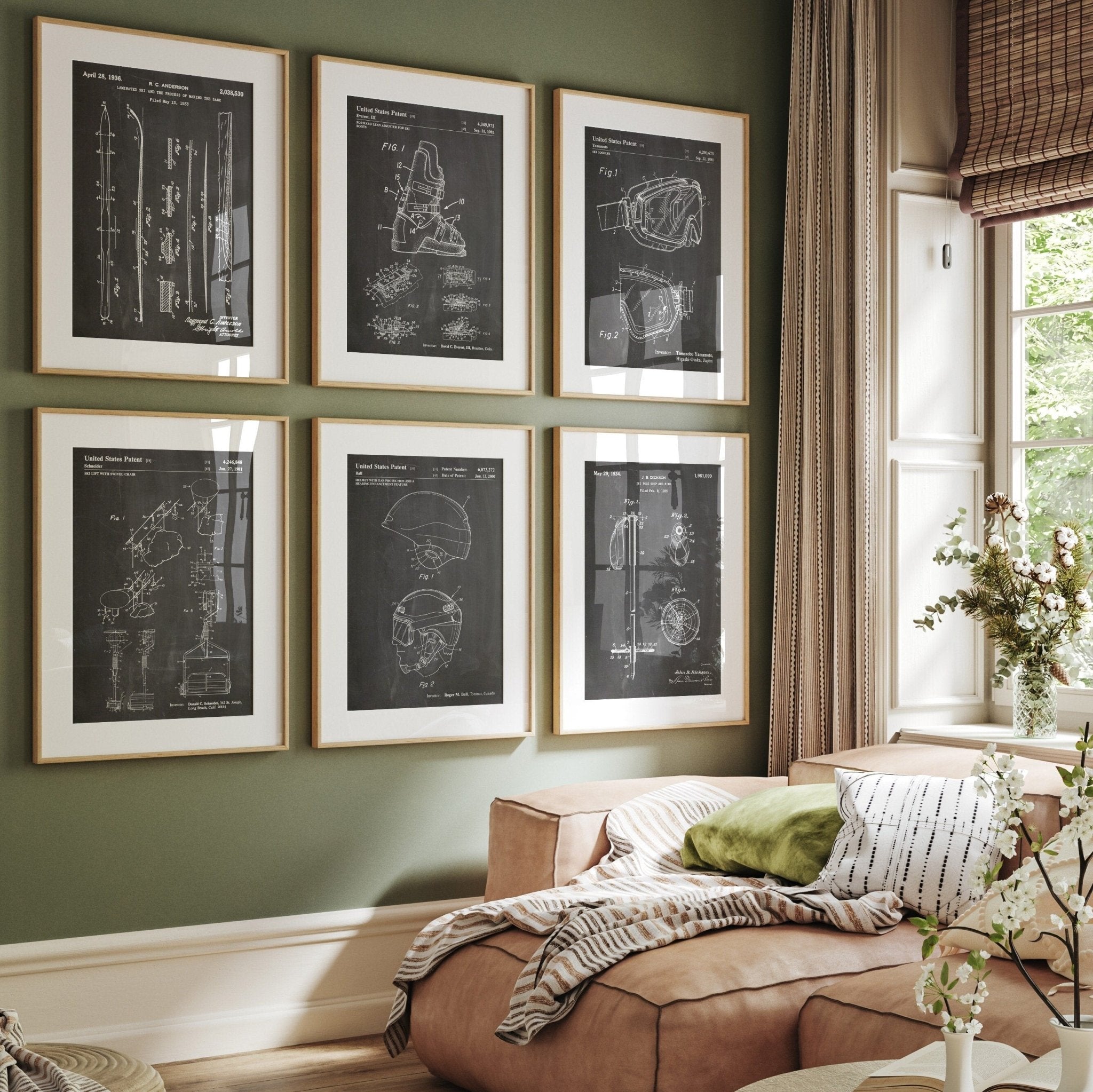 Skiing Set Of 6 Patent Prints, Snowboarding Wall Art, Skiing Decor, Ski Poster, Snowboarder Gift, Bedroom Prints, Cabin Decor