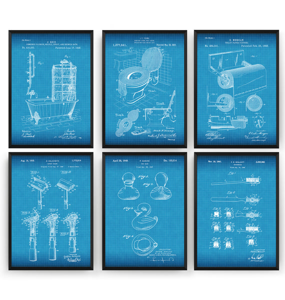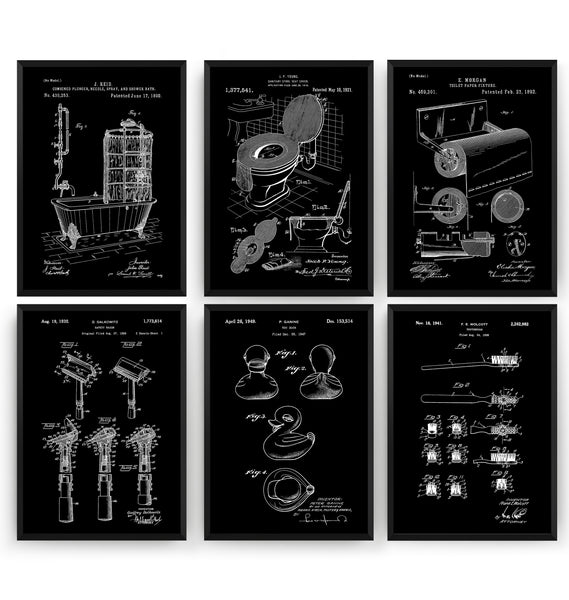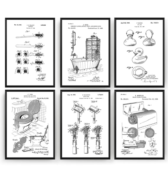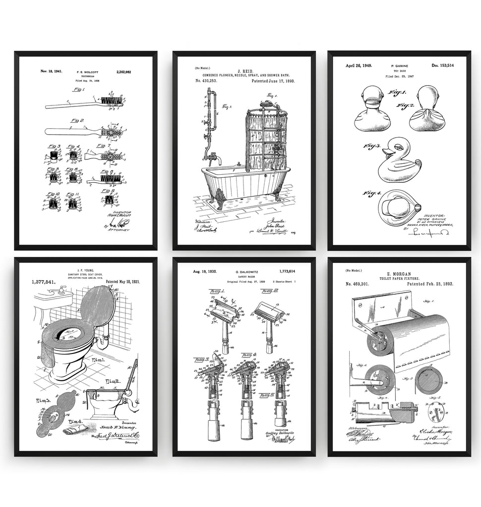 Bathroom Set Of 6 Patent Prints