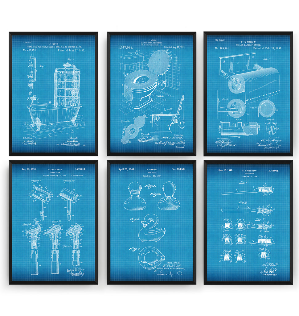 Bathroom Set Of 6 Patent Prints - Magic Posters
