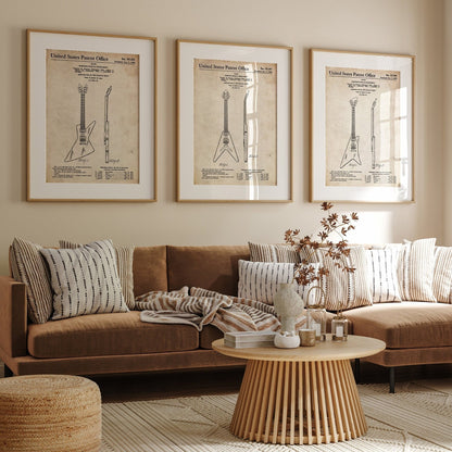 Gibson Rock Guitars Set Of 3 Patent Prints