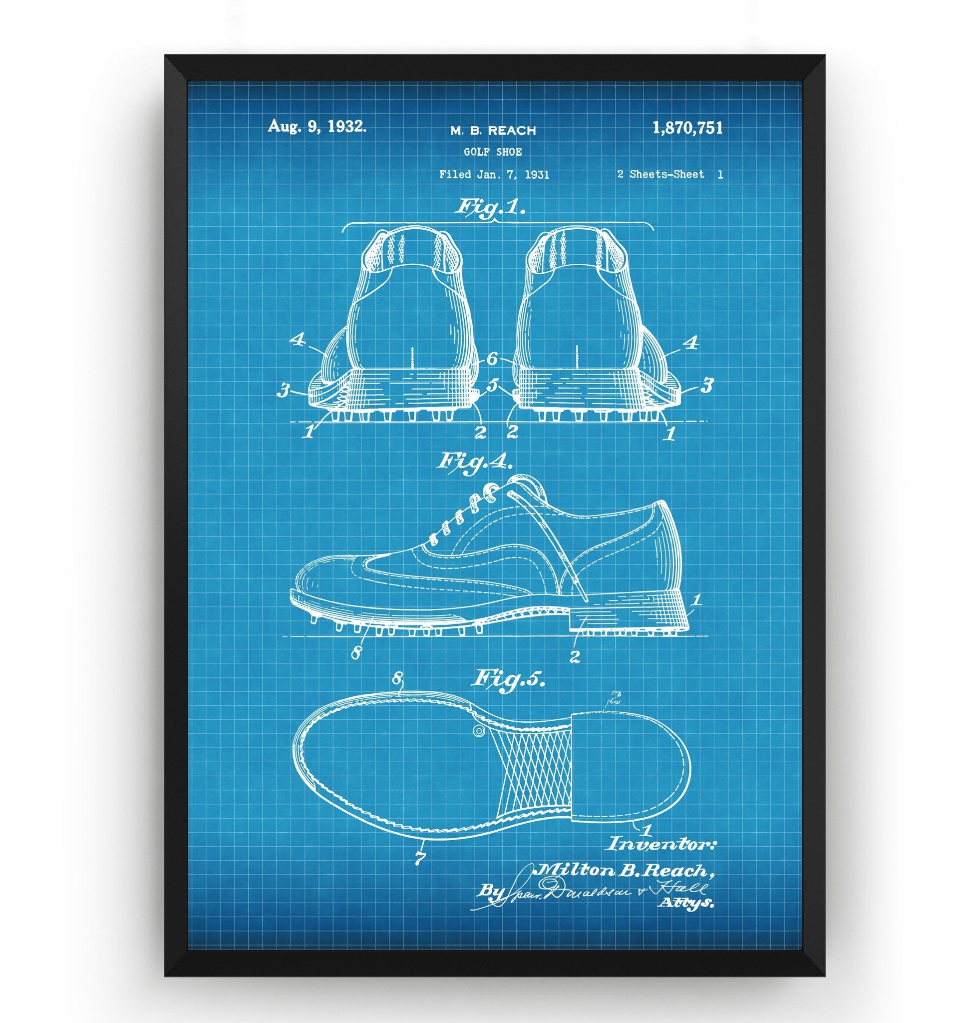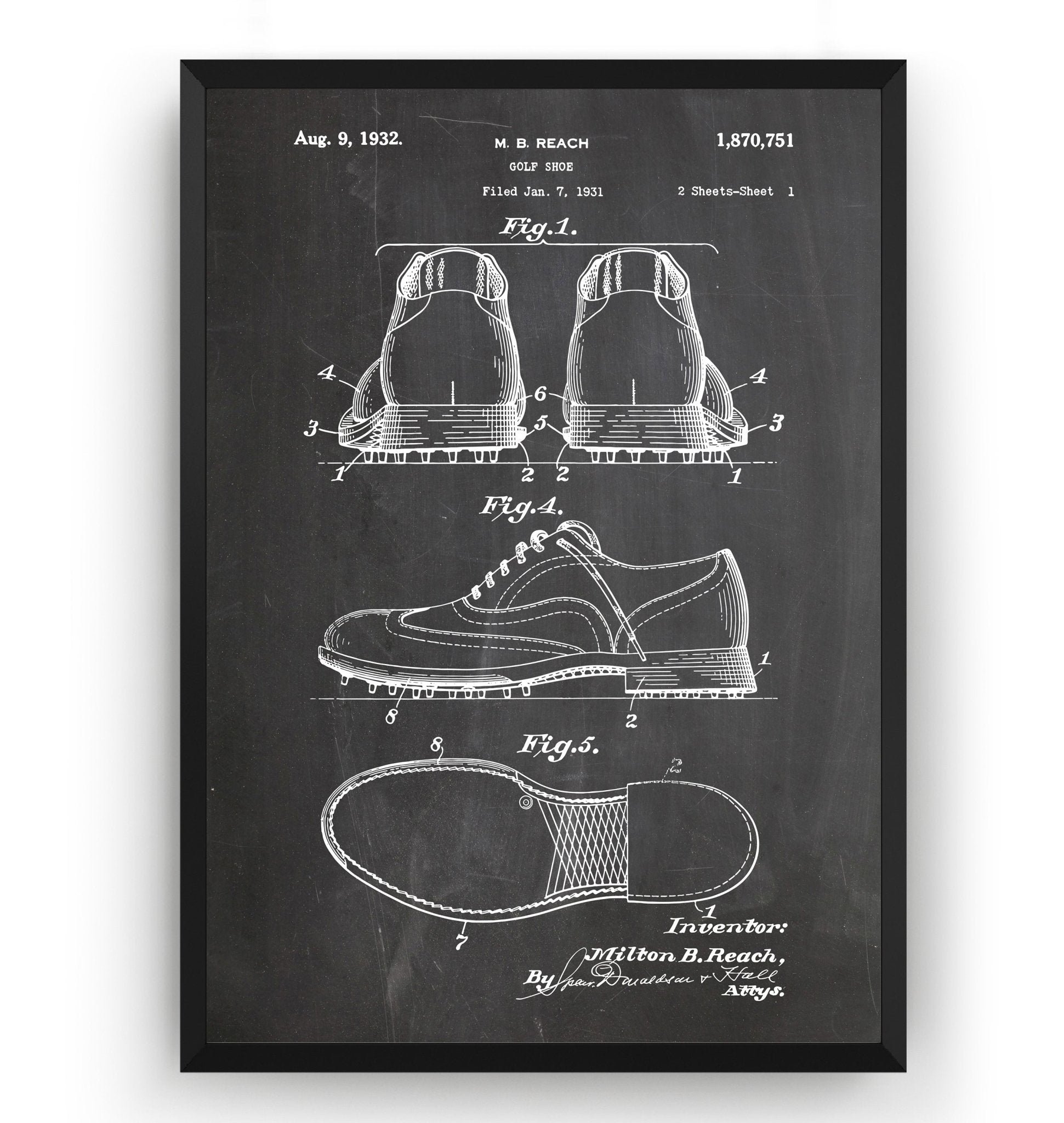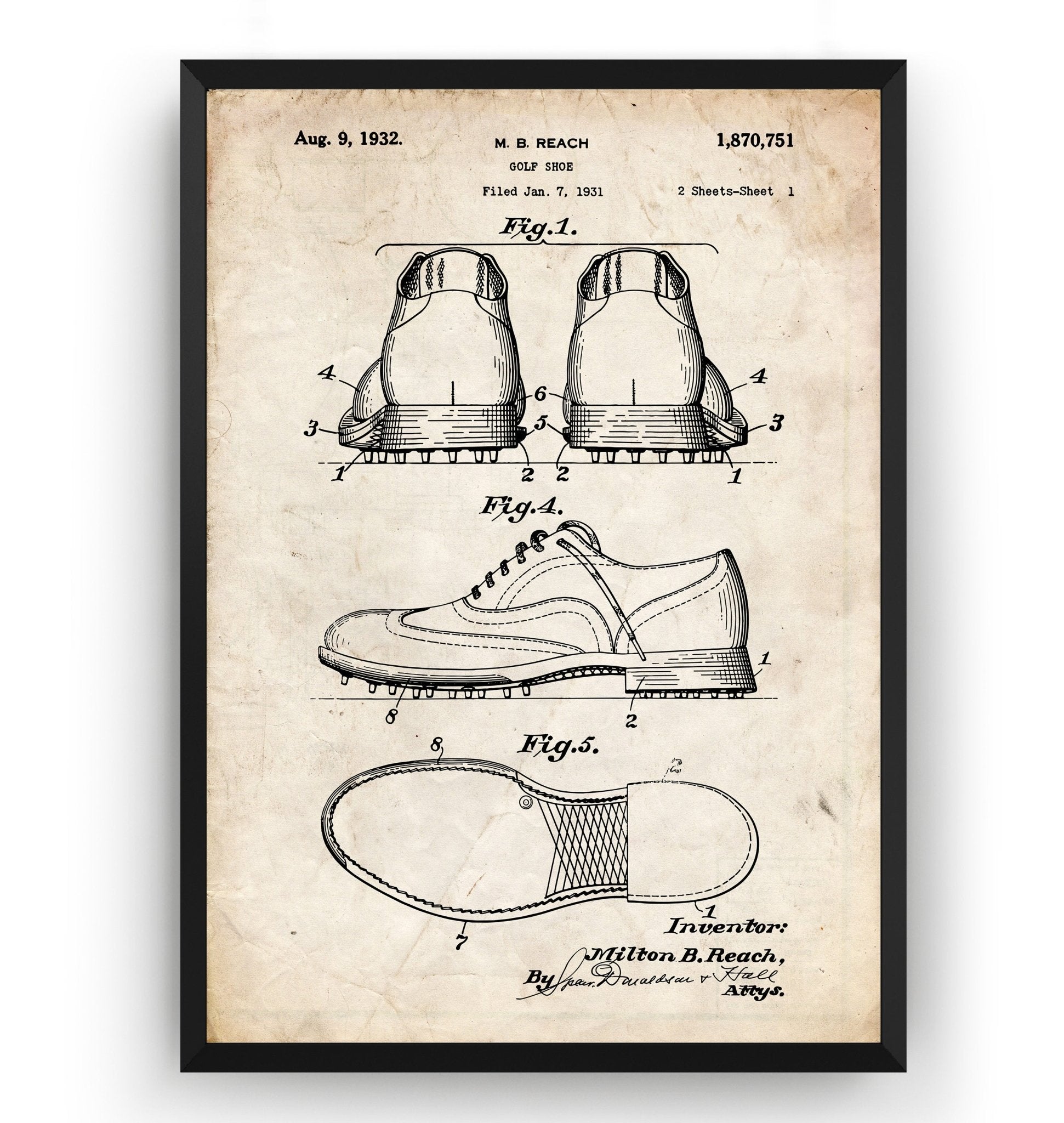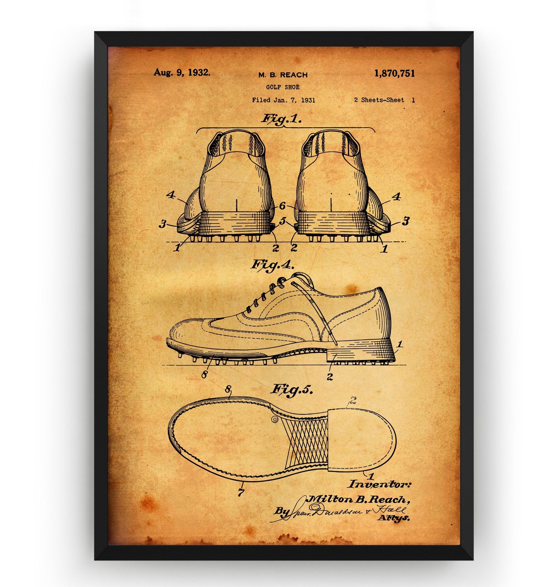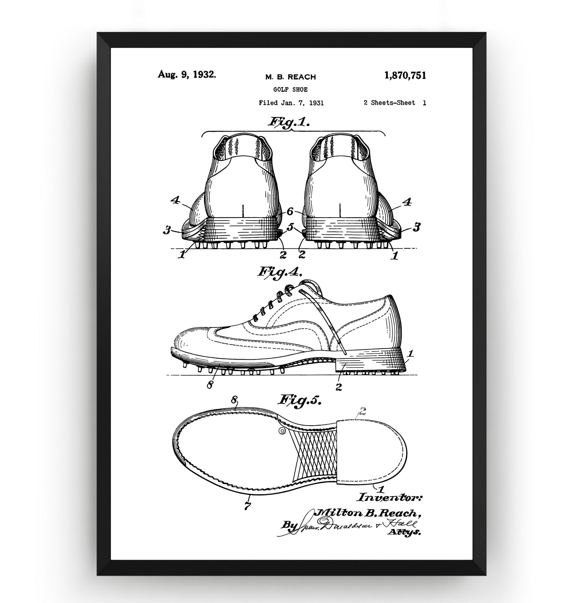 Golf Shoe 1932 Patent Print