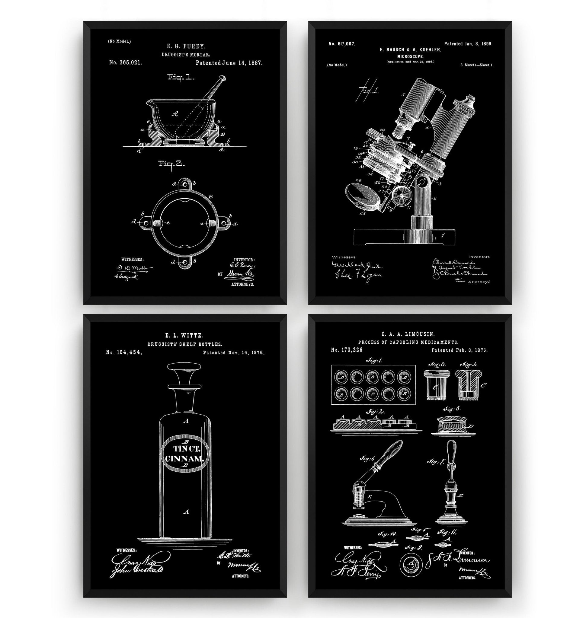 Pharmacy Set Of 4 Patent Prints - Magic Posters