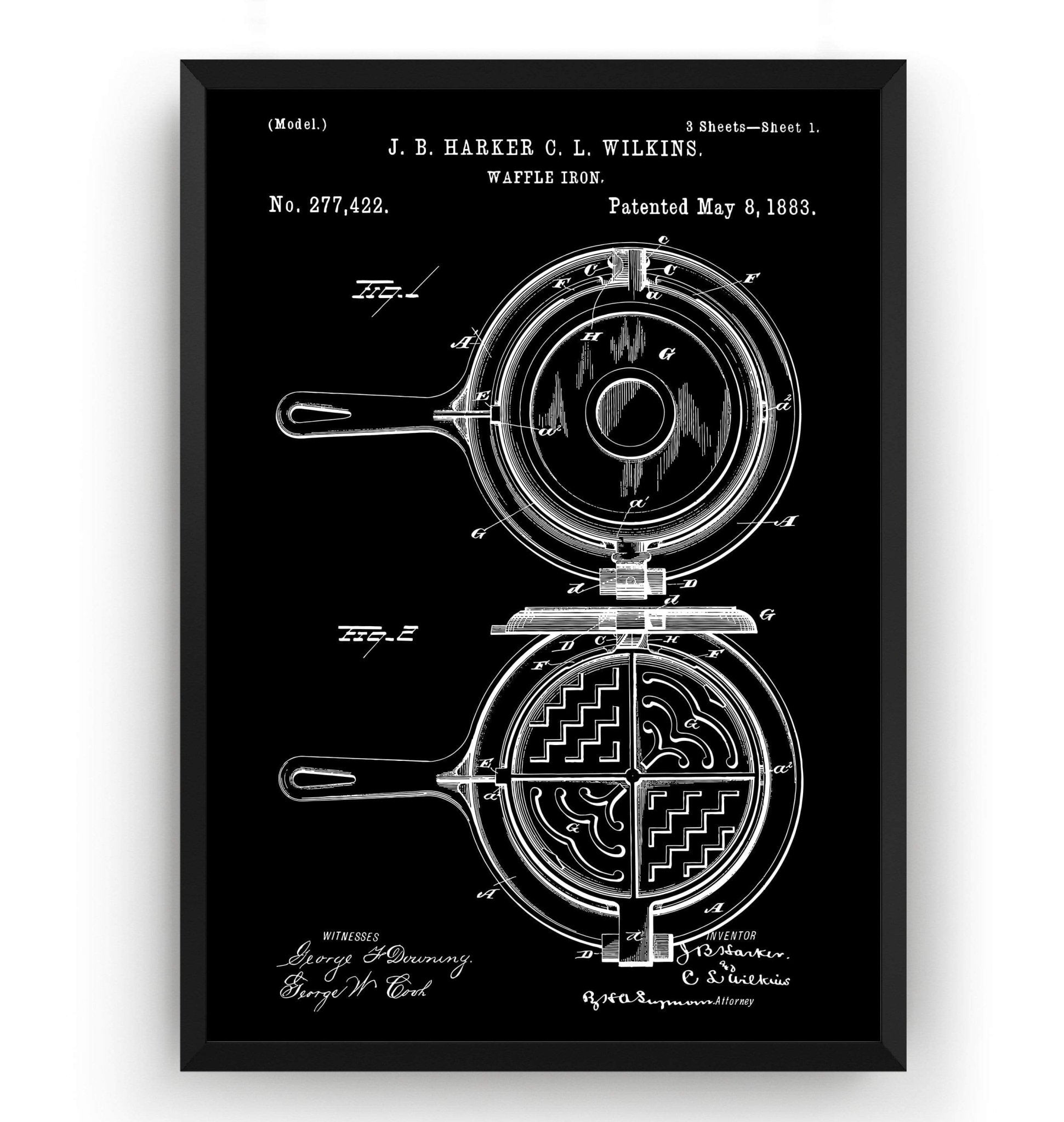 Waffle Iron 1883 Patent Print