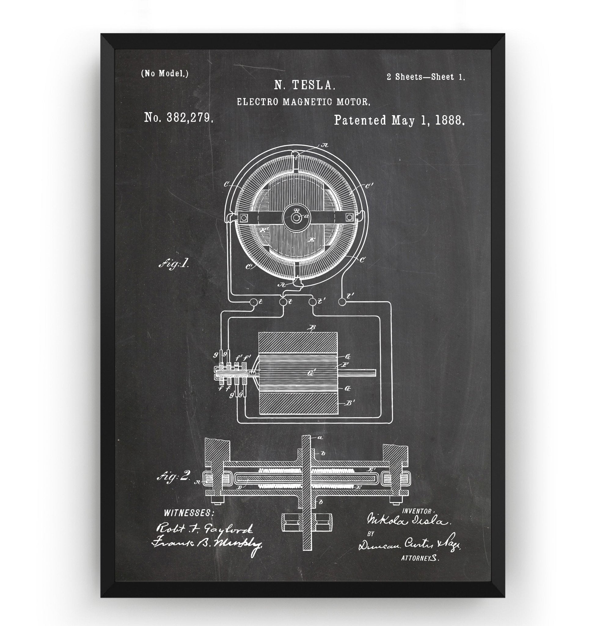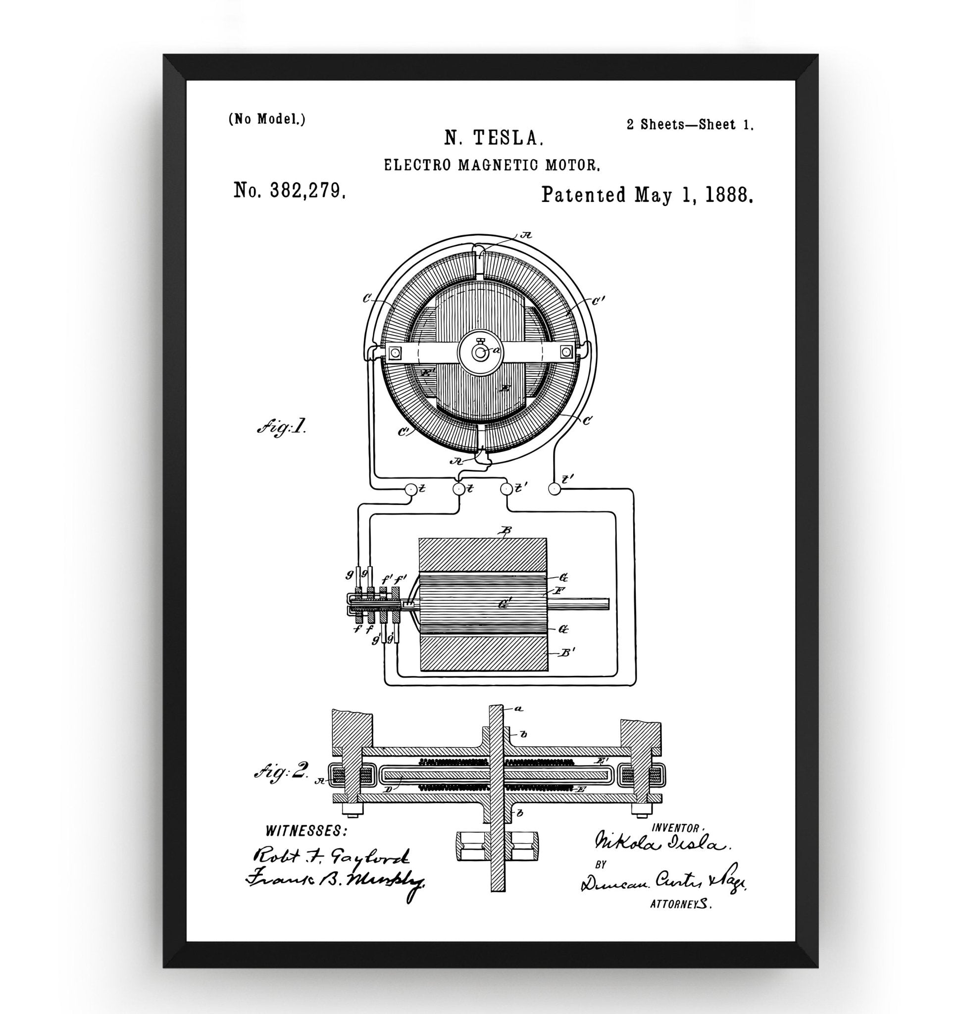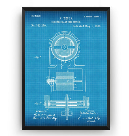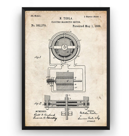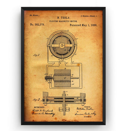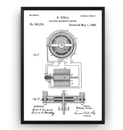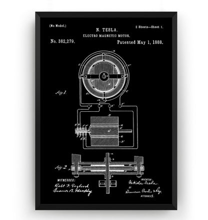 Tesla Electro Magnetic Motor 1888 Patent Print - Magic Posters