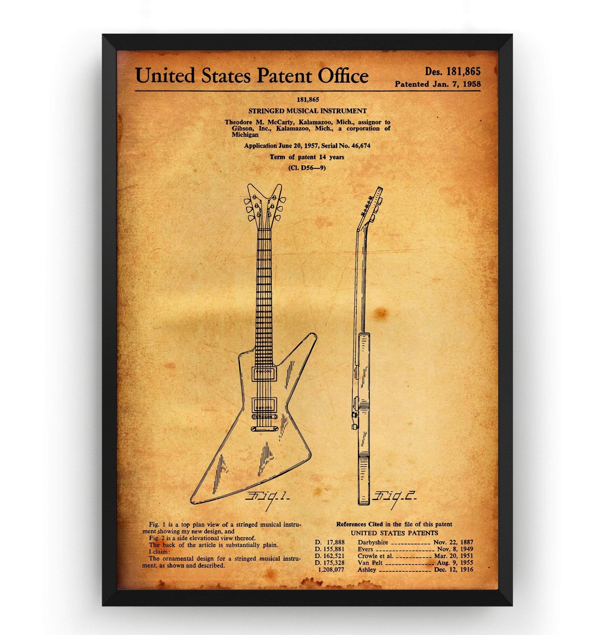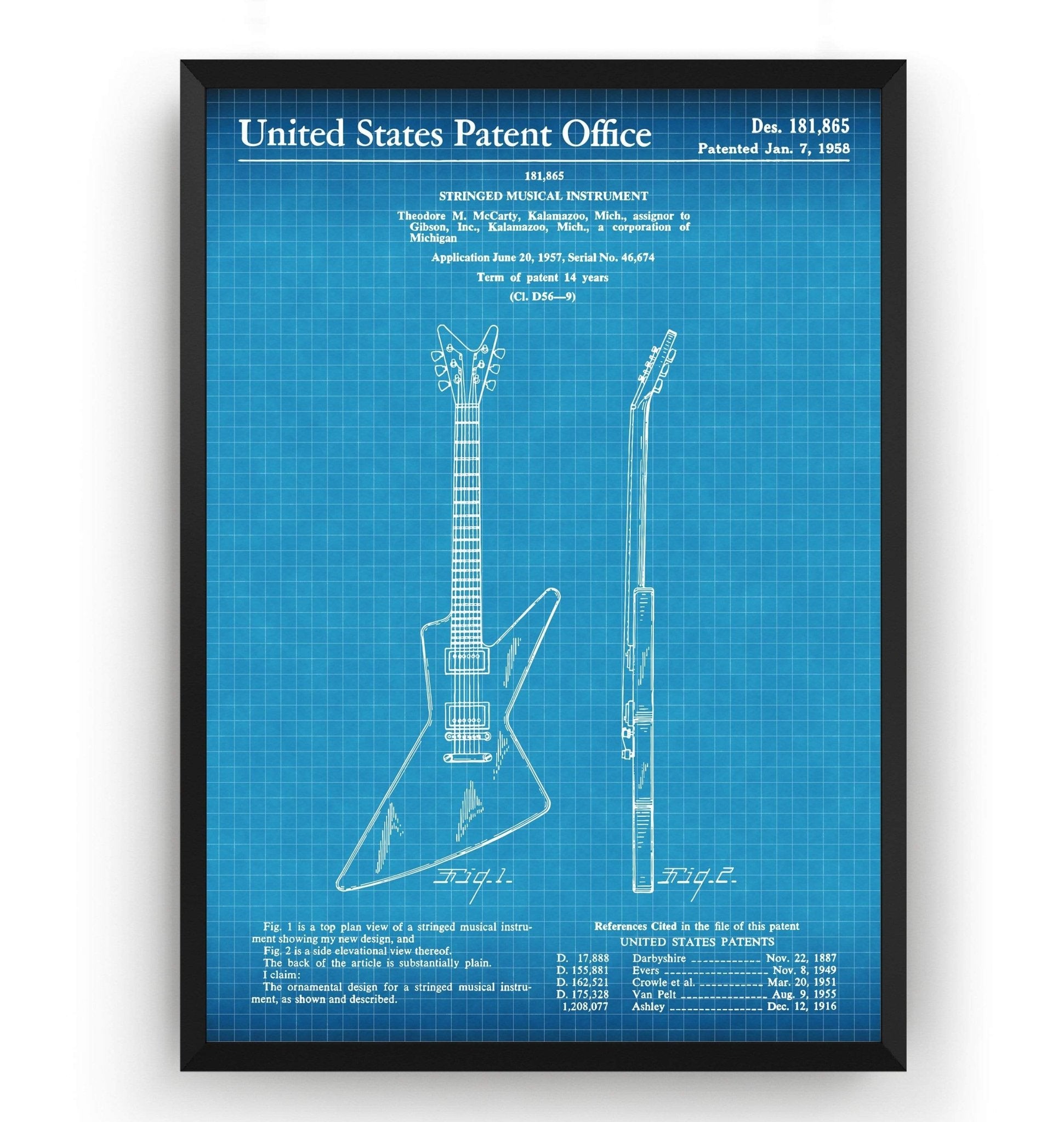 Gibson Explorer Guitar 1958 Patent Print - Magic Posters