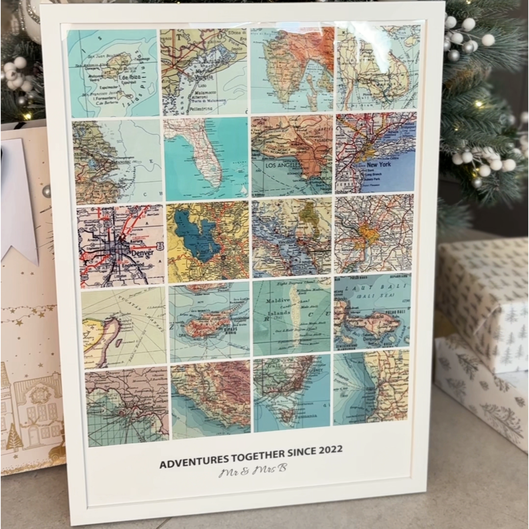 Our pick for seventh place, This Xmas wrap up the moments, places and shared adventures of your life together in one beautifully designed piece of art. With this personalised square travel map print, you choose the locations that matter most — those city streets you wandered together, the island you escaped to, the landmark where you first said “yes.” The print then arranges up to 30 of those maps, customised with your names, quote and date, into one elegant-modern layout.