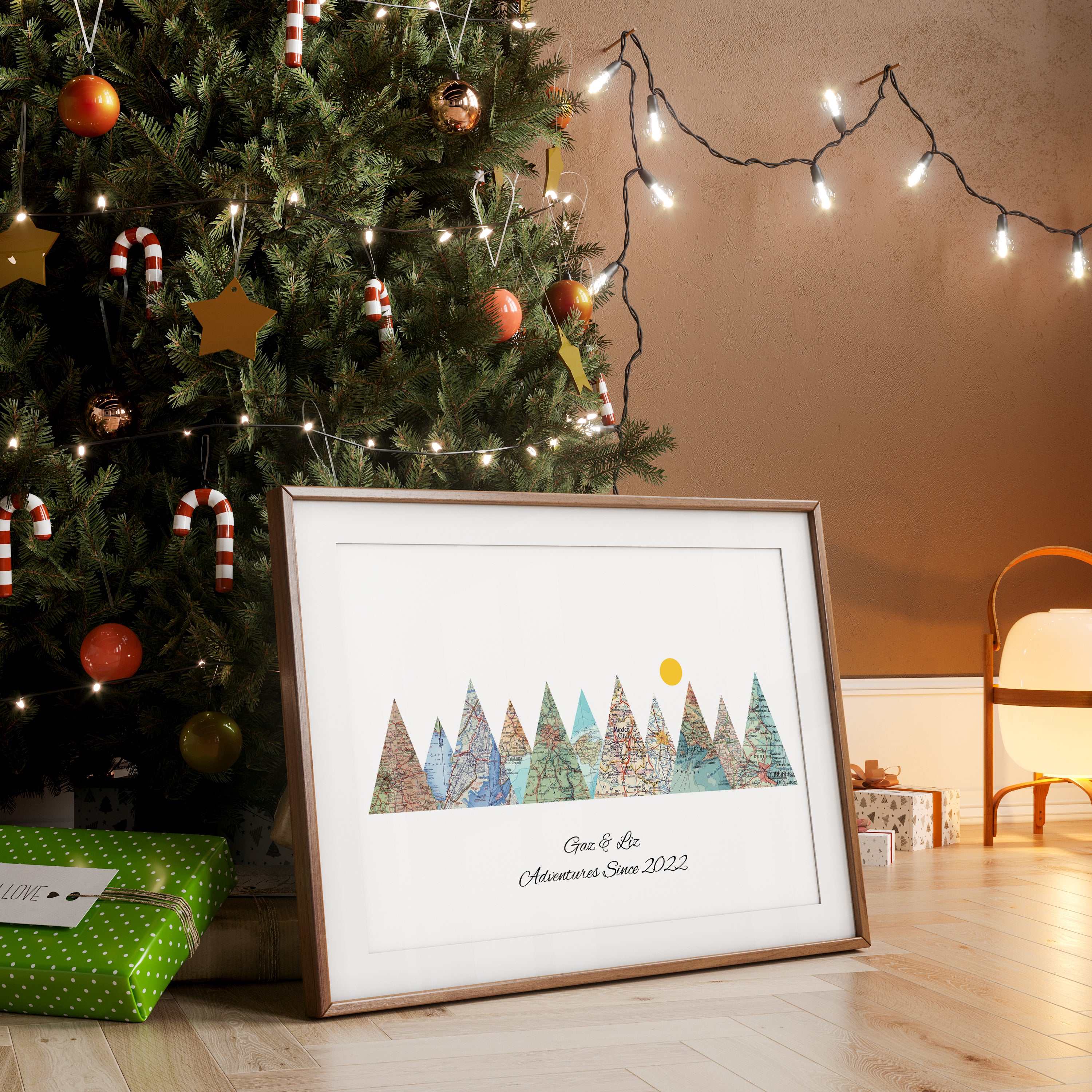 Our number eight pick. Celebrate this xmas the love of travel, the thrill of new places and the comfort of shared memories with a print that transforms up to 30 of your favourite destinations into a striking mountain-shaped map artwork. Choose the places you’ve been together, add your names and a meaningful date — then hang the story of your journey where it will be seen and loved.