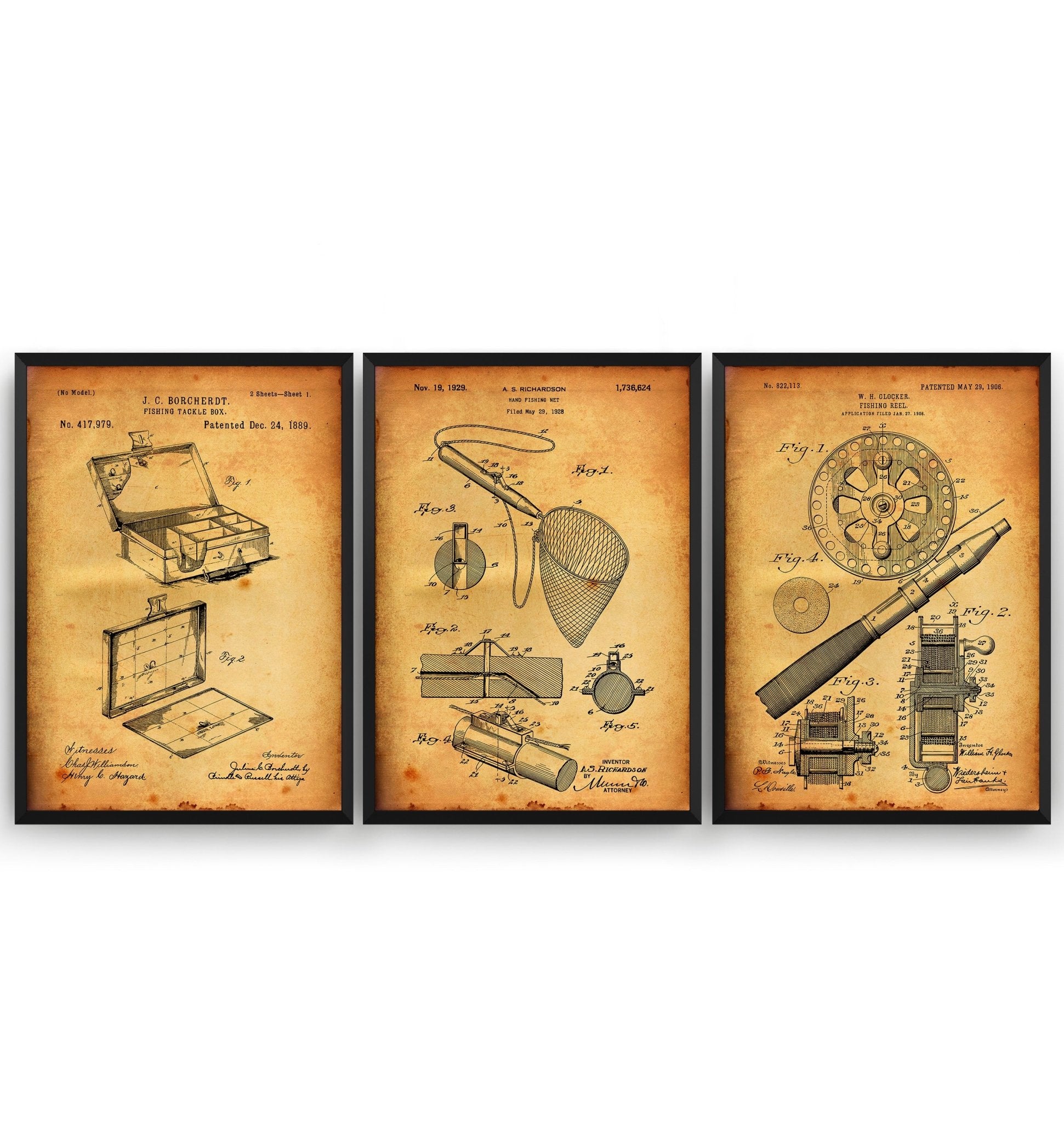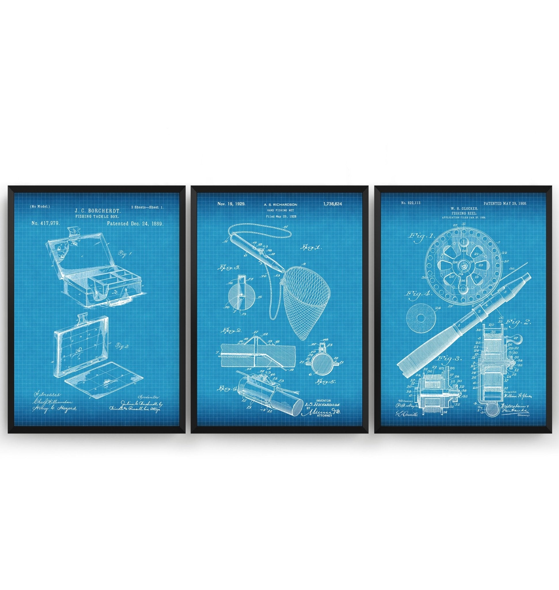 Fishing Set Of 3 Patent Prints - Magic Posters