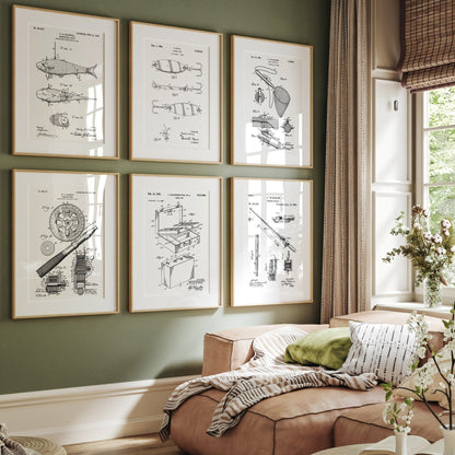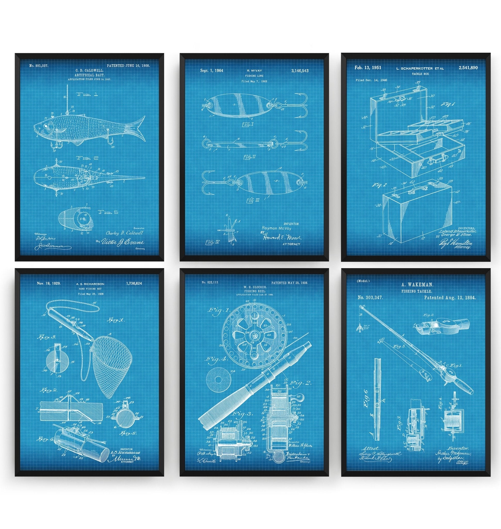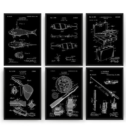 Fishing Set Of 6 Patent Prints - Magic Posters