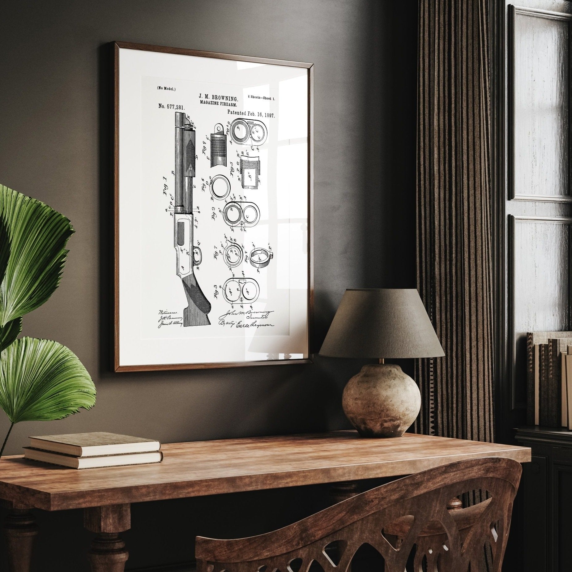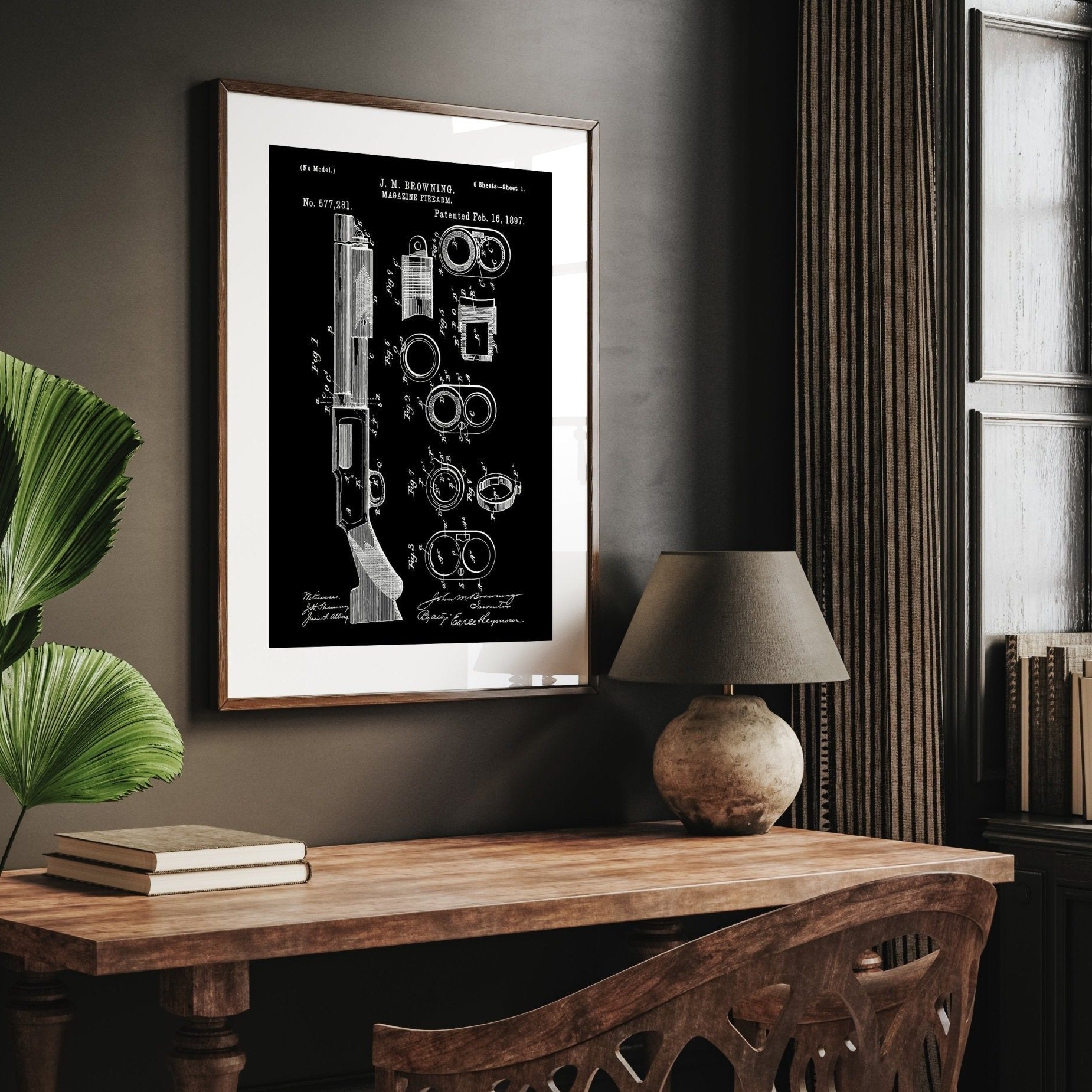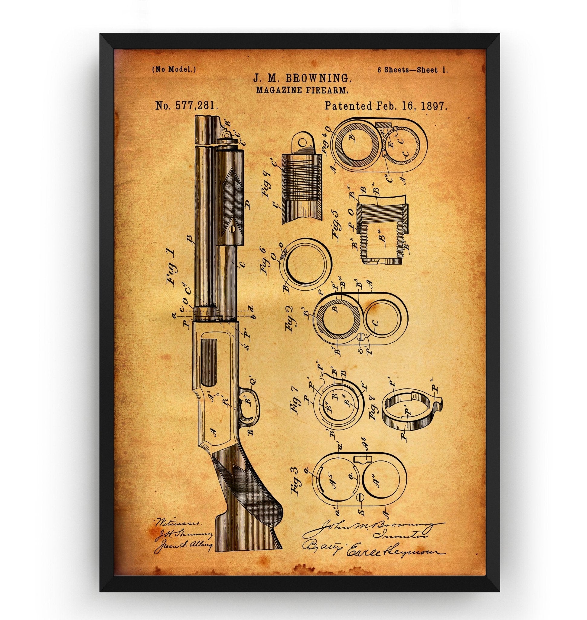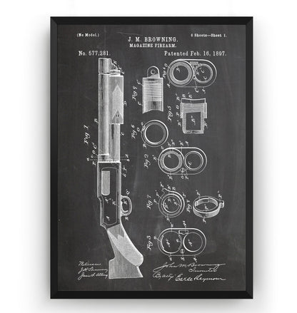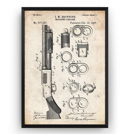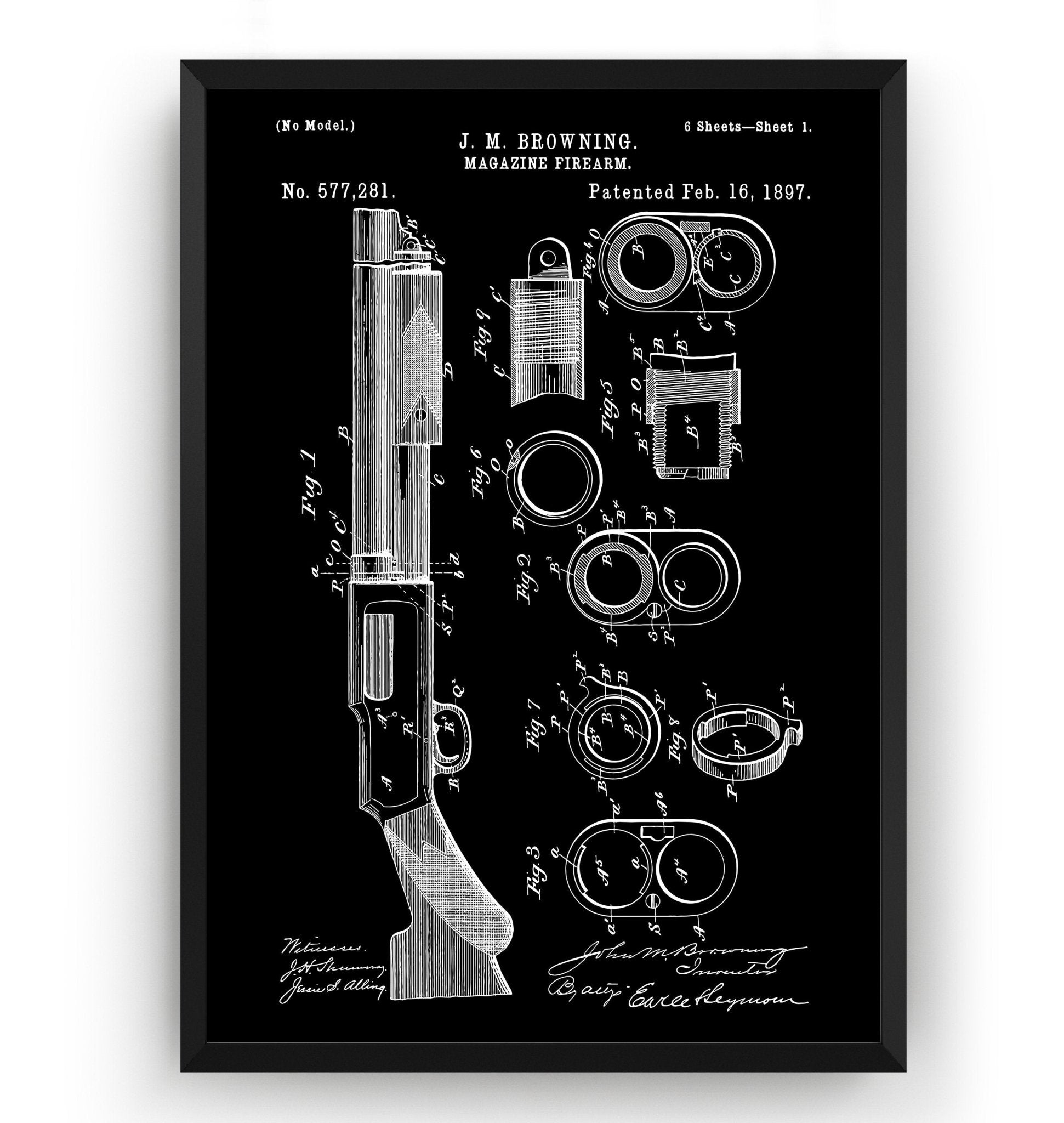 Browning Magazine Shotgun Firearm 1897 Patent Print - Magic Posters