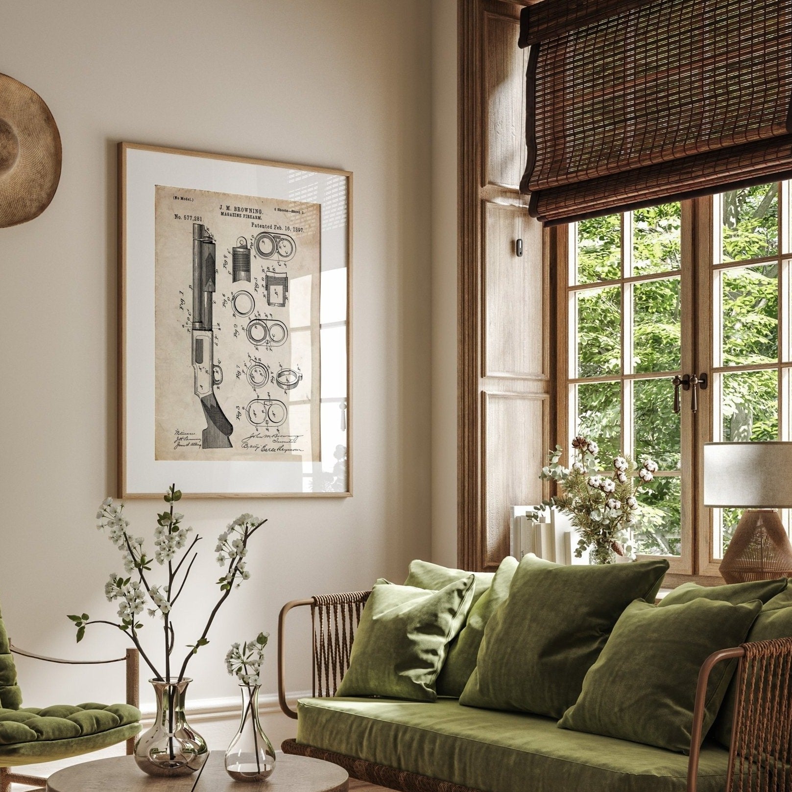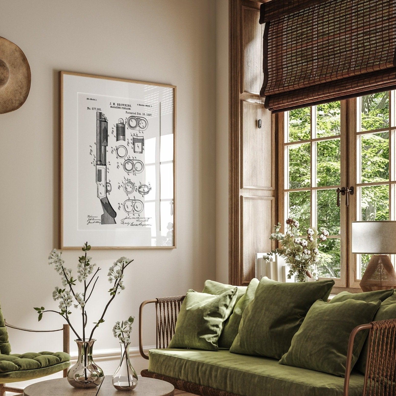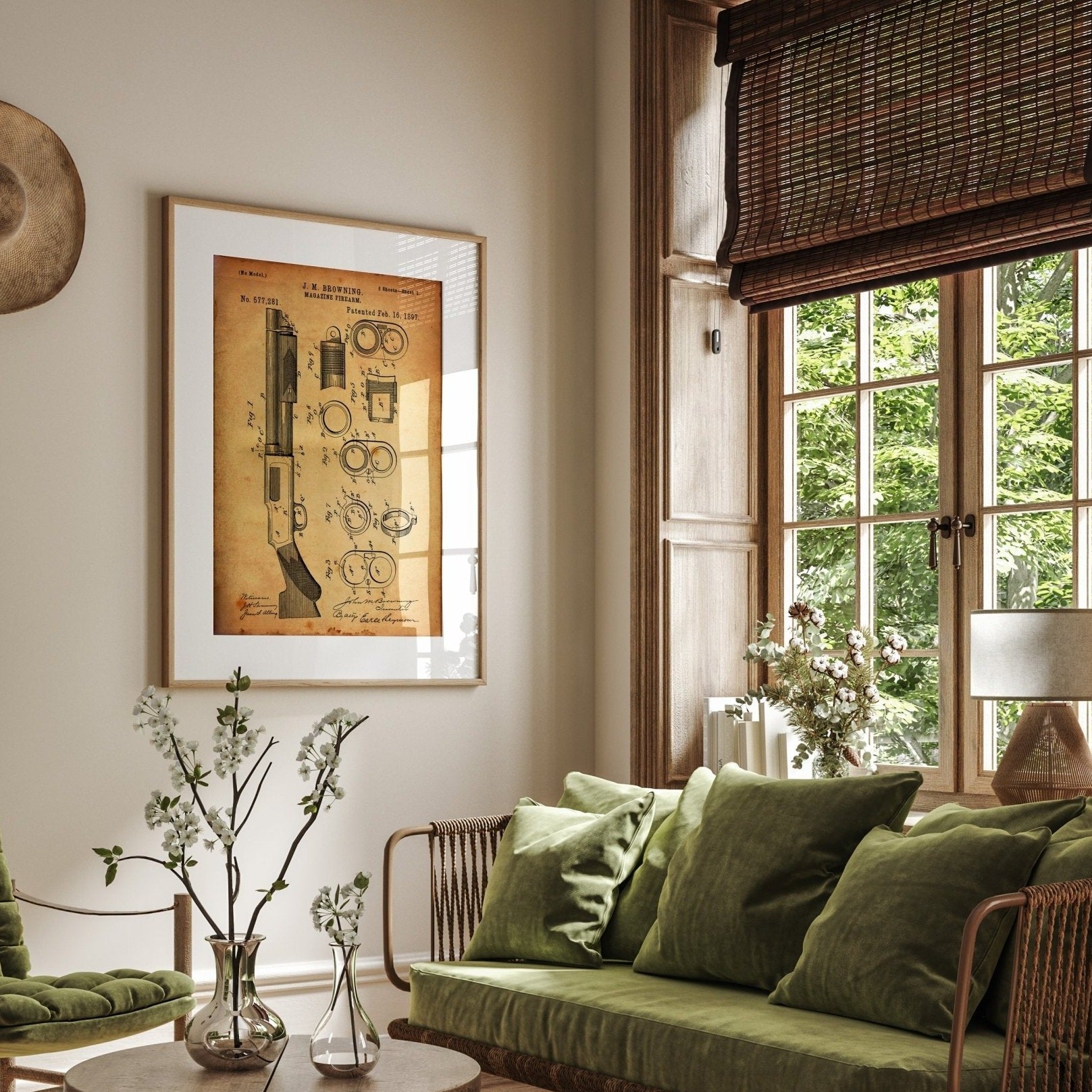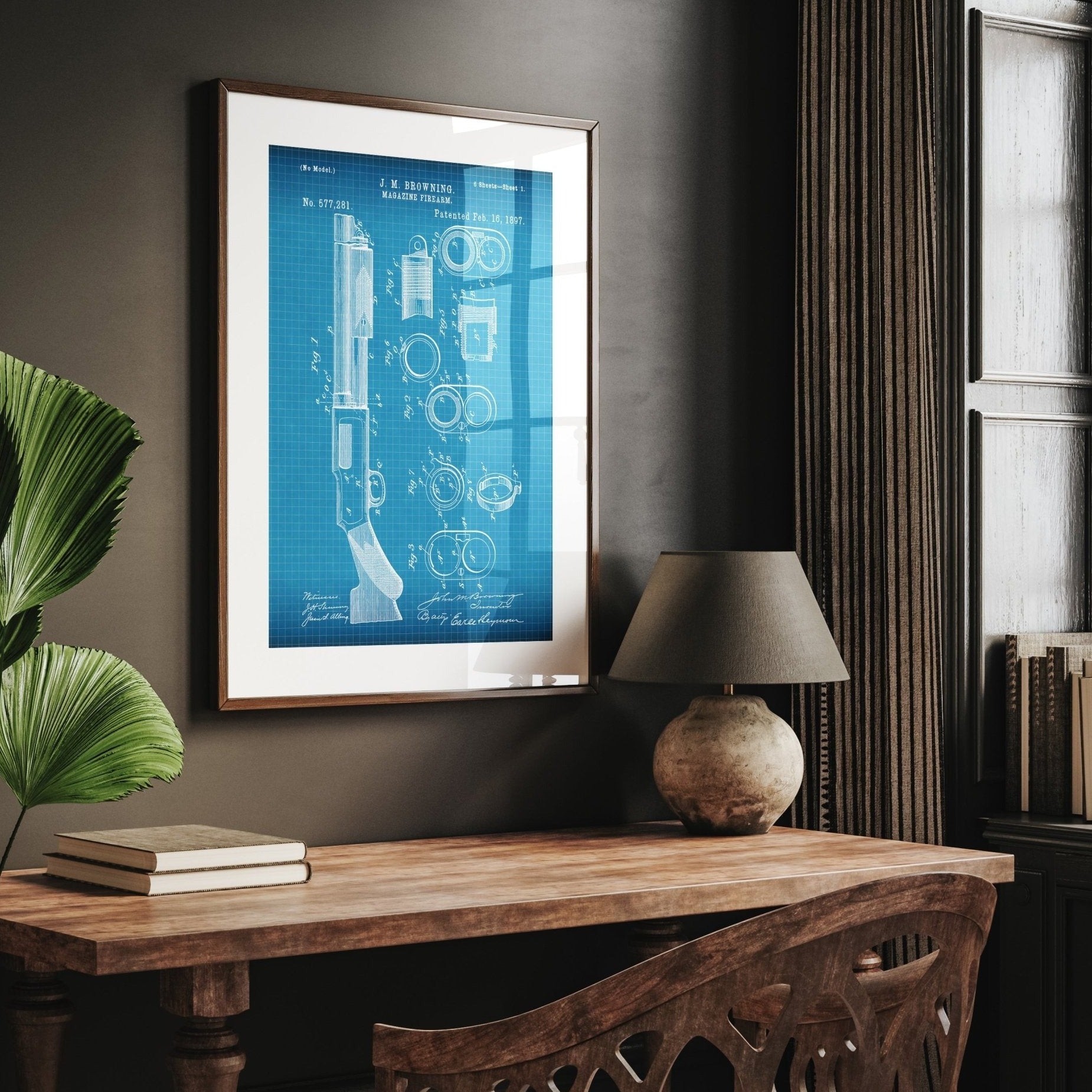 Browning Magazine Shotgun Firearm 1897 Patent Print - Magic Posters