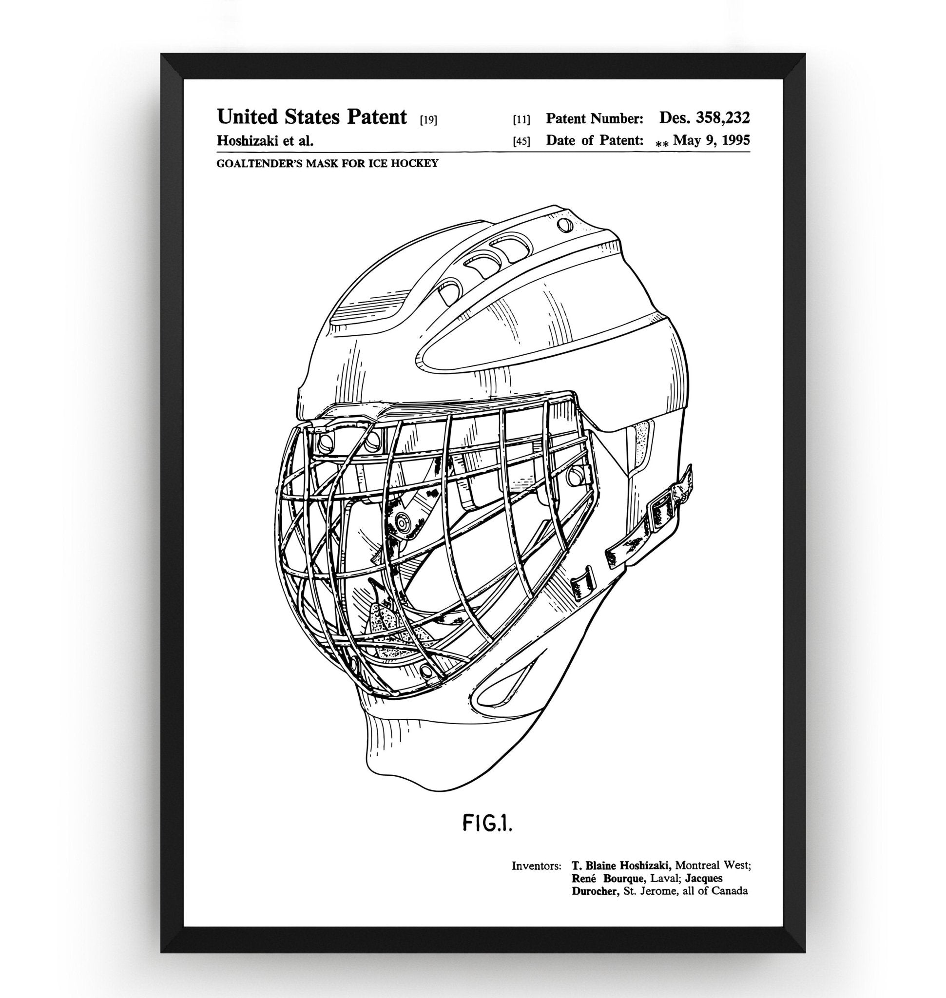Ice Hockey Goalie Helmet 1995 Patent Print - Magic Posters