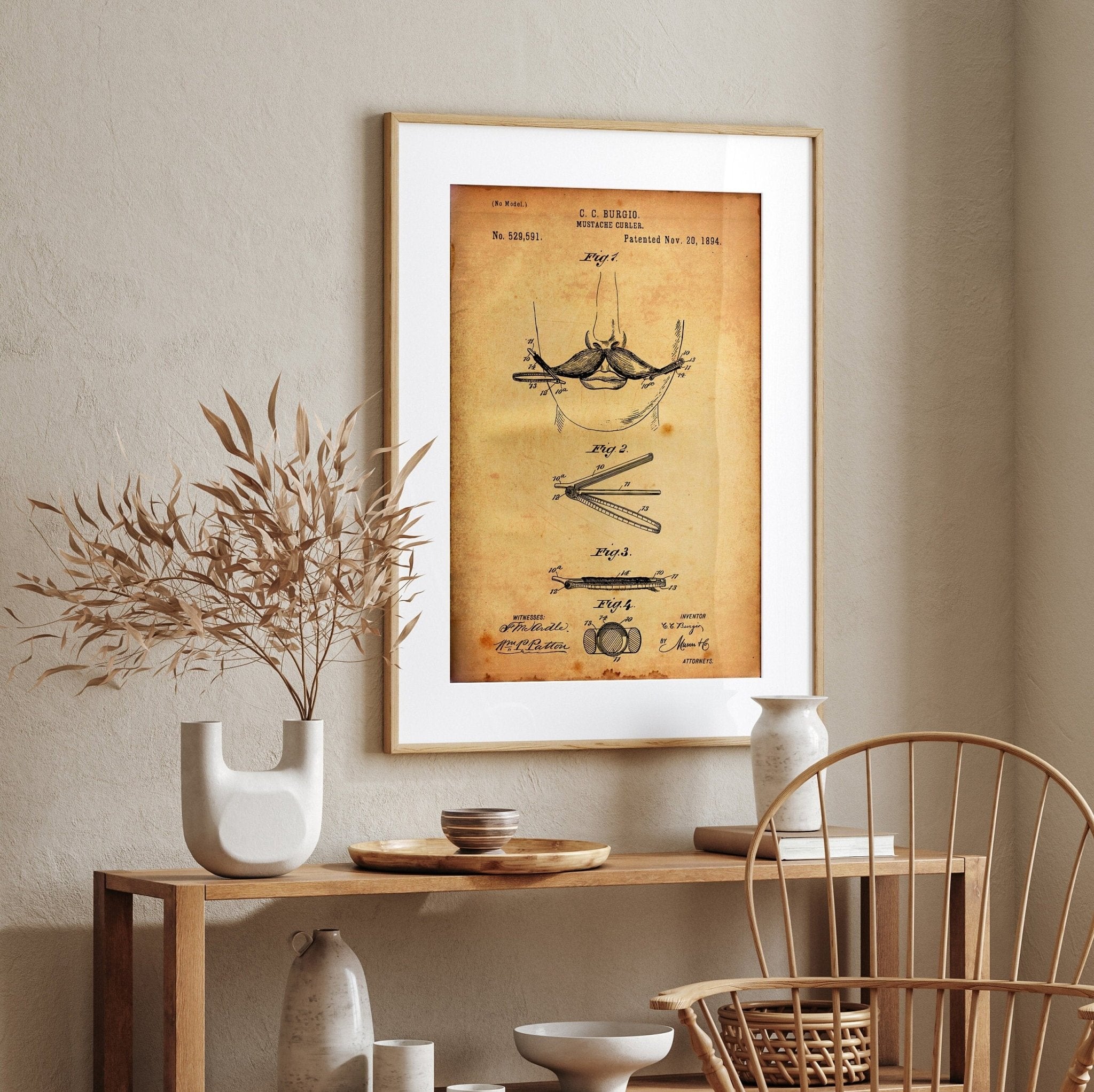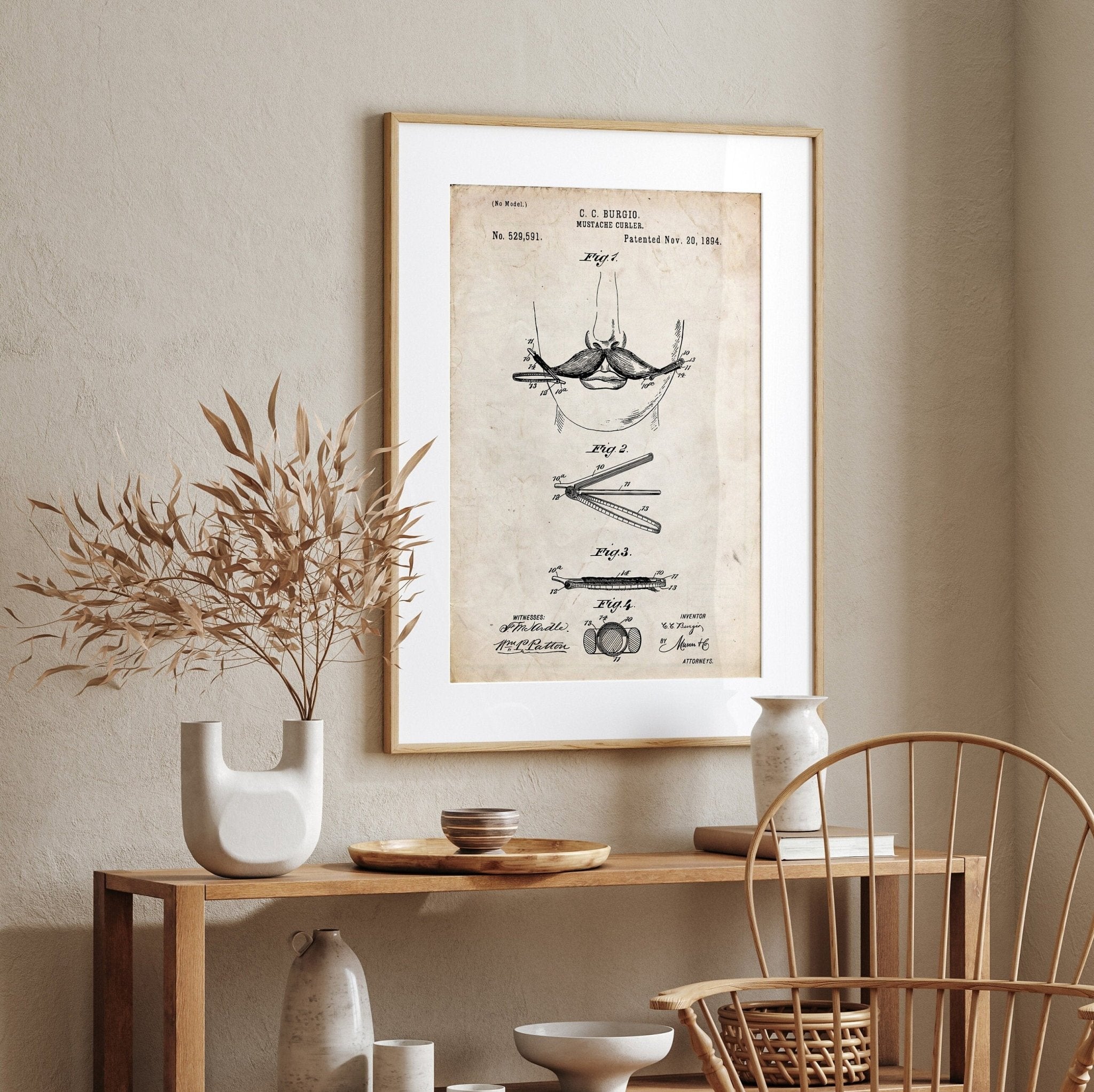 Moustache Curler 1894 Patent Print